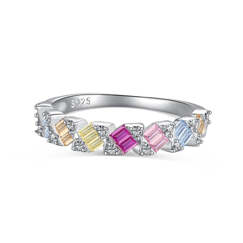 The Prism Arc Ring is a vibrant celebration of light and color, crafted to enchant and inspire. Featuring a graceful band adorned with a radiant array of multicolored cubic zirconia stones, this ring reflects the beauty of a prism scattering light into a vivid spectrum. Each carefully cut stone, set in polished 925 silver with rhodium plating, creates a harmonious arc of hues—soft blues, radiant pinks, sunny yellows, and warm oranges—flowing seamlessly together. Designed for those who embrace individuality and joy, the Prism Arc Ring is more than jewelry; it’s a wearable work of art. Whether worn to elevate everyday elegance or as a statement of bold sophistication, this ring transforms every moment into a celebration of life’s vibrant spectrum.