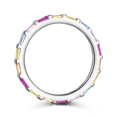 The Chromis Circle Ring is a celebration of vibrant elegance and timeless simplicity. Adorned with a stunning array of multicolored baguette-cut cubic zirconia stones, this ring captures the brilliance of a spectrum, seamlessly set in 925 silver with rhodium plating. Each stone radiates its unique hue, flowing in a continuous circle of color and light, creating a harmonious blend of sophistication and playfulness. Designed for those who love subtle yet striking pieces, the Chromis Circle Ring is perfect for adding a touch of personality to everyday looks or layering for a bold statement. With its sleek, modern design and vibrant hues, this ring is more than an accessory—it’s a symbol of individuality and the beauty of embracing life in full color.