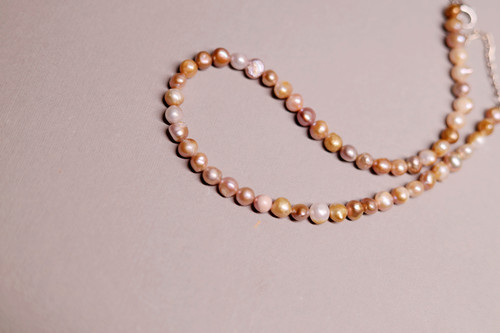 The name " Ocean’s Whisper Strand " draws inspiration from the serene, natural beauty of the sea and the soft, metallic luster of these freshwater pearls. Pearls are treasures of the ocean, each one quietly formed over time, and their subtle radiance is reminiscent of gentle waves catching the light. "Whisper" conveys the elegance and understated allure of the pearls, evoking a sense of calm and timelessness. Perfect for those who seek a piece that’s as serene and captivating as the ocean itself, making them feel like a glimpse of something magical and rare.