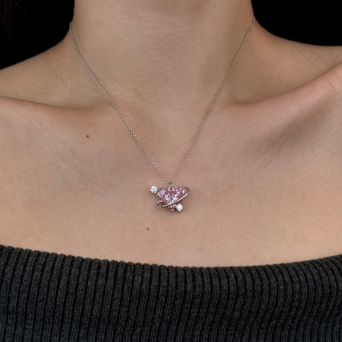 In the vast expanse of the universe, among stars and celestial wonders, there exists a force stronger than gravity—love. The Venus Orbit Pendant is a tribute to that universal truth, where two radiant pink zirconia hearts are forever entwined, bound by an elegant silver orbit. Crafted in 925 silver with rhodium plating, this pendant mirrors the dance of planets and stars, a reminder that even in the cosmos’ grandeur, love remains the most powerful force. As you wear this piece, imagine yourself as the center of your own universe, radiating light and beauty to all around you. Inspired by Venus, the goddess of love and allure, this pendant is more than jewelry—it’s a celebration of the bonds that pull us closer, of connections that defy space and time. Let it be your celestial charm, a shimmering testament to love’s infinite journey.